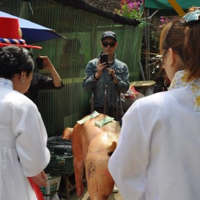 En compagnie de quatre danseurs coréens, Ayelen a ainsi cherché à réactiver le matériel chorégraphique d’Hérétiques tout en le confrontant à la culture coréenne, et notamment sa forte tradition chamanique. Dans ce cheminement, toute l’équipe a assisté à une cérémonie chamanique à Séoul, qui a donné au projet sa couleur singulière : une interrogation/réinterprétation de cette expérience vécue ensemble.